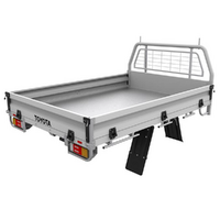 - The Toyota Genuine Tray Body Range includes a strengthened main structure using high strength galvanised steel for improved durability and quick release nylon hinges on the steel body to allow quicker removal of drop sides.
